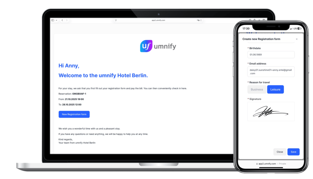 umnify combines communication, check-in, and management into a single digital guest journey—fully integrated with apaleo.