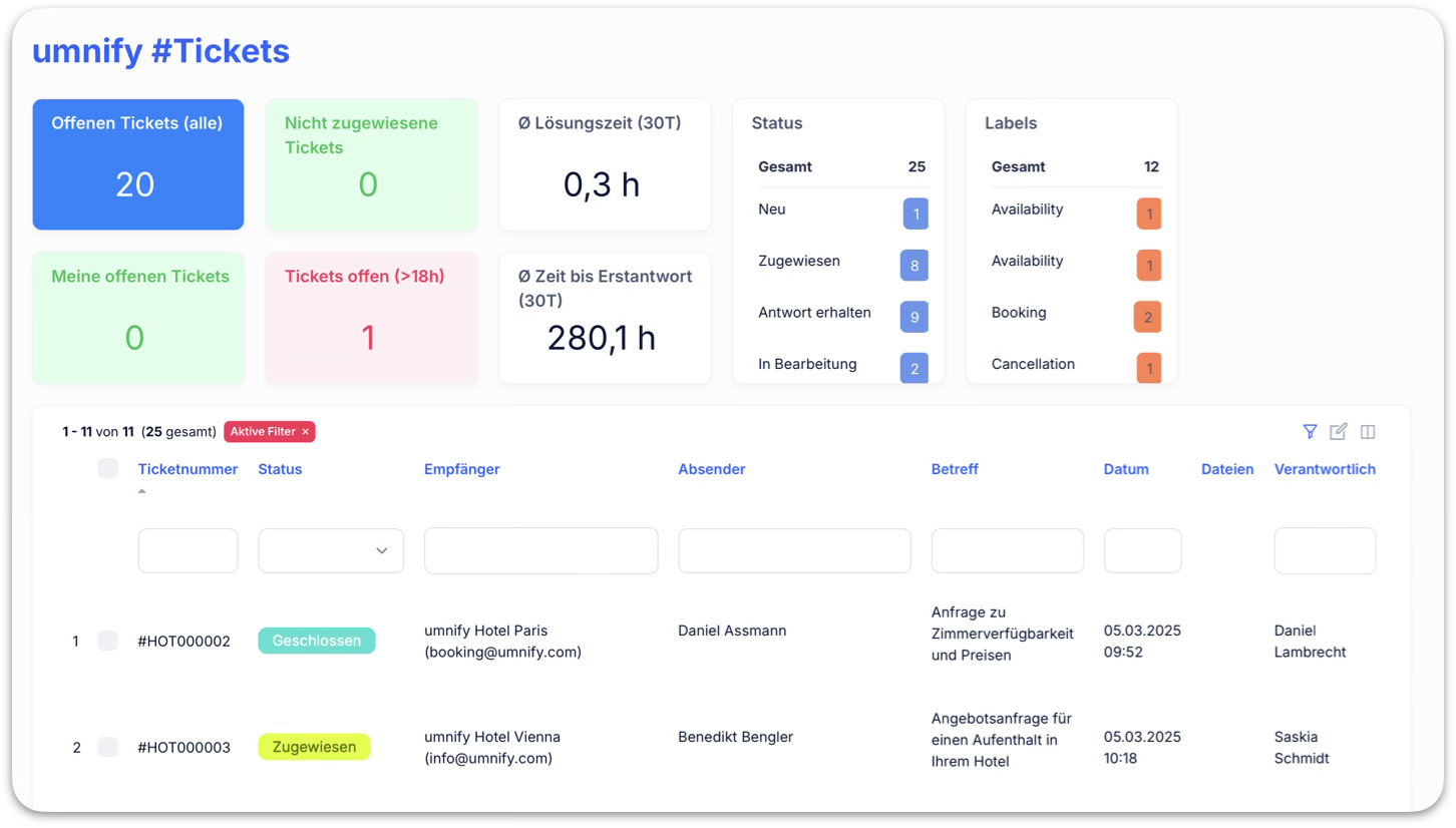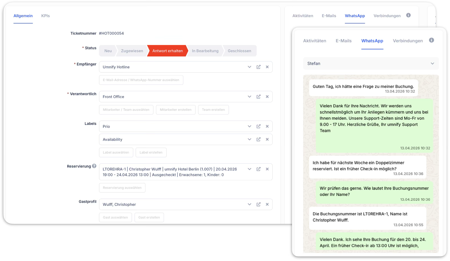 Im Hotelalltag verteilt sich Kommunikation schnell auf mehrere Kanäle. E-Mail-Postfächer, WhatsApp, interne Abstimmungen. Das führt oft dazu, dass Anfragen liegen bleiben, doppelt beantwortet werden oder schlicht untergehen.